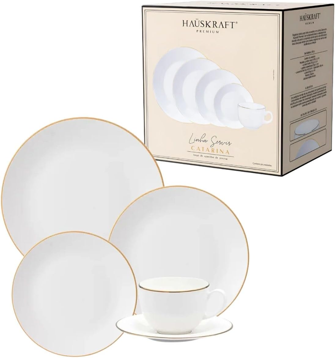 O aparelho de jantar Catarina branco da linha Servir da Hauskraft é a escolha perfeita para quem busca praticidade e sofisticação na mesa. Produzido em opalina de alta qualidade, oferece resistência, leveza e um acabamento elegante que combina com qualquer estilo de decoração. Com 20 peças, é ideal para compor refeições completas, trazendo harmonia e beleza para o dia a dia ou momentos especiais com família e amigos.
