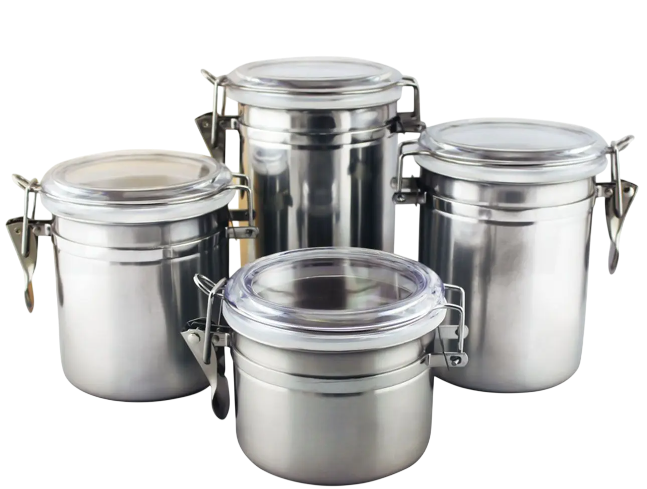 Cada pote possui tampa transparente com anel de vedação e trava metálica, garantindo fechamento firme e hermético. Isso contribui para manter grãos, cereais, farinhas, açúcar, café, biscoitos e outros mantimentos frescos por muito mais tempo.