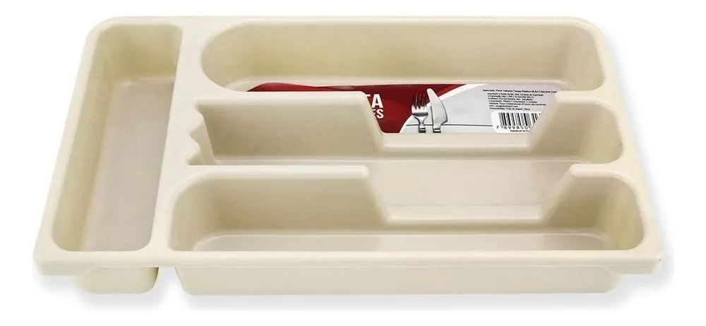 Fabricado em plástico resistente, oferece boa durabilidade e é fácil de limpar no dia a dia. Seu formato retangular permite acomodar facas, garfos, colheres e outros utensílios de maneira organizada, facilitando o acesso durante o preparo das refeições.