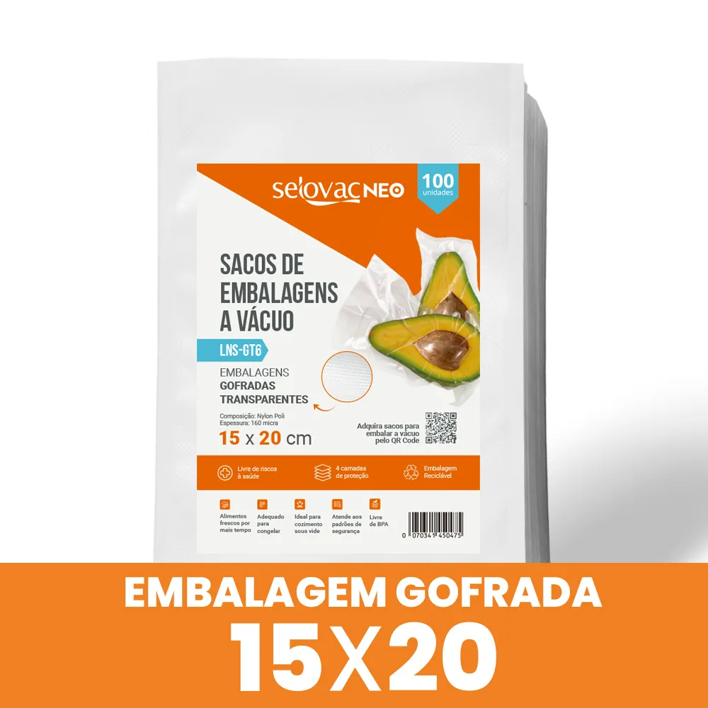 Os sacos para embalagem a vácuo Selovac Neo 15x20cm são a escolha ideal para quem busca praticidade, conservação e segurança no armazenamento de alimentos. Produzidos em material de alta resistência (nylon poli), garantem excelente vedação, evitando a entrada de ar e aumentando significativamente a durabilidade dos produtos.